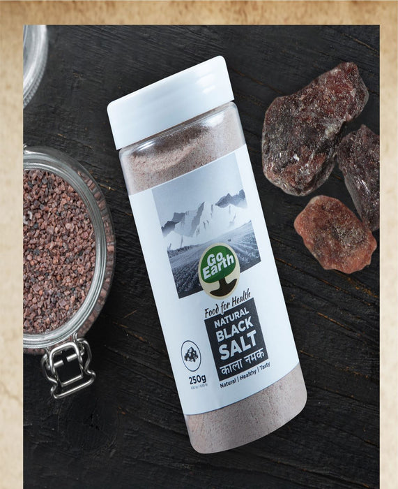 Black salt rocks are hand-picked and ground under stringent hygienic conditions. It comes from India’s, Pakistan’s, Bangladesh’s, Nepal’s, and other Himalayan salt mines. Ayurvedic medicine first used black salt for its holistic, medicinal powers. Go Earth's Organic Black Salt is then sealed in a convenient, reusable pet jar to preserve the product's freshness, flavor, and fragrance. The presence of iron and other minerals gives the black salt a pinkish-grey color, contrary to its name. It gives most foods a unique flavor and is regarded to be a healthy kind of salt. It is commonly used to treat gastrointestinal issues and is believed to be beneficial for high blood pressure due to its low salt content. It also aids in the detoxification of our bodies.
