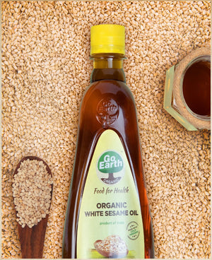 Sesame oil is one of the first known crop-based oils, and it is frequently used as a flavour enhancer in a variety of cuisines. With its antifungal, antiviral, therapeutic, and medicinal qualities, sesame oil is also known as the "Queen of Oils” which is good for deep frying. Toasted sesame seed has high omega-6 fatty acids that can be used for stir fry. Go Earth's Organic sesame oil is extracted directly from white sesame seeds by crushing and pressing them at a low temperature, resulting in a healthy and nutritious oil with a mild and pleasant flavour.