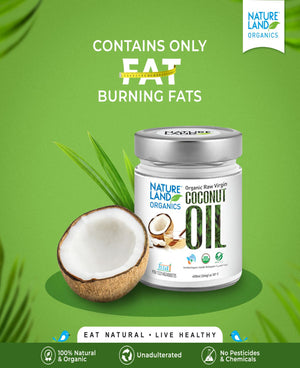 Organic coconut oil which is pure, unrefined and cold pressed is high in saturated fats. It is not churn out with antibiotics, hormones, pesticides, irradiation or bioengineering. NatureLand Organic coconut oil which comes in a 500 ml bottle. It is 100% certified oil, made from prime quality of coconuts. It is sourced from certified organic farms all across India. It doesn’t involve bleaching. As mentioned,NatureLand coconut oil is 100% cold pressed oil that is grown without use of any chemicals, pesticides or insecticides. This adds good taste, flavor and aroma to our daily routine meals. High in Vitamin E, this oil also helps in reducing weight as it is free from fats. This is fertilized in a controlled way in organic farming.