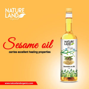 Sesame oil is one of the earliest known crop-based oils, besides being used as cooking oil it is often used as flavor enhancer in Chinese, Japenese, Korean and South Asian cuisines. Sesame Oil is also known as queen of oils with its healing anti fungal, antiviral, healing and medicinal properties. Natureland Organic Sesame Oil is squeezed directly from white sesame seeds by crushing and pressing White seeds under low-temperature condition known as cold pressing resulting in healthy and nutritious oil with mild and pleasant flavor.