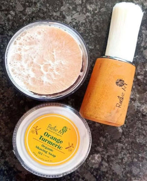 Rustic Art Organic Orange Turmeric Shaving Soap is your go to product for smooth & moisturized skin after shaving.Organic shaving soap reinvents shaving in a way where the organic and natural content of the soap are not only good on your skin, but also for your brush and the razor as the combination of oils and butters used in its formulation increase its efficiency and life. It creates a stable lather that lasts longer, in turn, rendering the process smooth, leaving behind a supple and soft skin. Suitable for facial & body hair and beard. Unisex product.