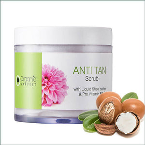 Organic Harvest Anti Tan Scrub is made with plant-based components and is certified organic. Ingredients with bioactive properties are Organic Liquid Shea Butter lightens the skin tone, tightens the skin, and helps to remove tan. Pro-vitamin B5 aids in the maintenance of soft, smooth, and healthy skin. It also possesses anti-inflammatory effects that aid in the healing process of the skin.